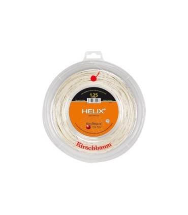 El cordaje Kirschbaum Helix 200m, con MPN KIRHEL200, destaca por su estructura en espiral que maximiza el control de la bola y la toma de efectos. Ideal para jugadores que buscan precisión en sus golpes, este monofilamento de poliéster blanco ofrece una sensación firme al impacto, siendo perfecto para aquellos que desean mantener el control incluso en golpes potentes.