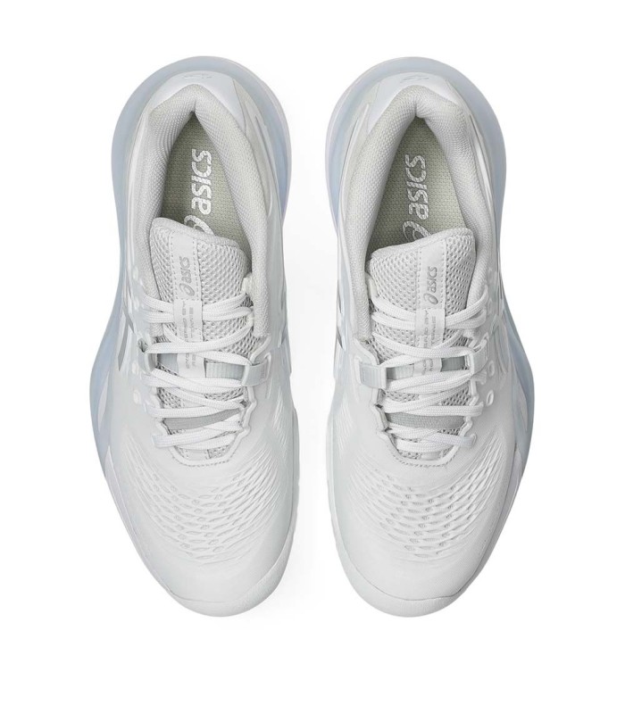 Con su diseño en color blanco y detalles en plata pura, estas zapatillas no solo ofrecen rendimiento, sino también un estilo elegante en la pista.