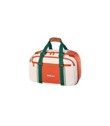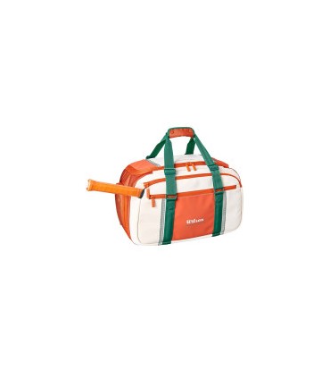 Inspirada en la sofisticación parisina, la Bolsa de Viaje Pequeña Wilson Roland Garros 2026 es una combinación perfecta de estilo y funcionalidad. Su diseño está influenciado por los intrincados detalles de hierro forjado de la arquitectura francesa y las célebres canchas de Porte d'Auteuil. Adornada con un exclusivo esquema de color crema y naranja, esta bolsa en formato clásico ofrece una solución compacta, pero sorprendentemente espaciosa, ideal para llevar tu vestimenta de tenis, pelotas y accesorios esenciales.