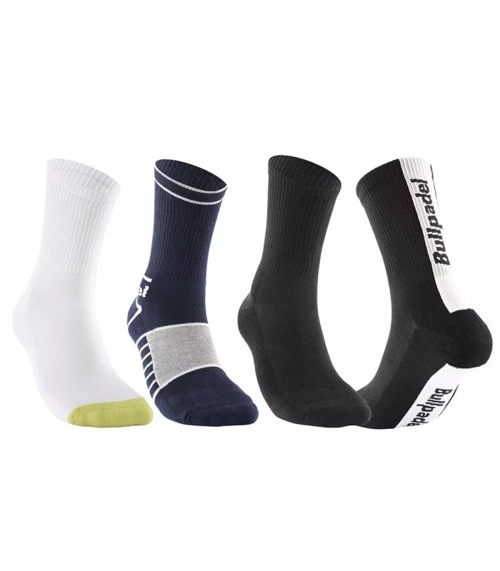 Descubre los calcetines Bullpadel BP255i, el complemento esencial para cualquier jugador de tenis o pádel que busca mejorar su rendimiento en la pista. Disponibles en un práctico pack de tres pares en colores negro, marino y blanco, estos calcetines combinan estilo y funcionalidad, convirtiéndose en una parte fundamental de tu equipamiento deportivo.