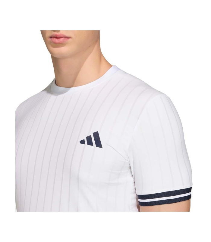 La Camiseta Adidas Climacool FreeLift París Blanca es ideal para jugadores de tenis que buscan libertad de movimiento y rendimiento superior. Con tecnología Climacool para mantenerte fresco, su diseño Freelift y corte slim aseguran comodidad y estilo. Fabricada con materiales reciclados, combina sostenibilidad y funcionalidad en cada partido.