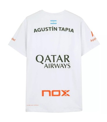 El modelo Nox AT10 Agustín Tapia White es una elección ideal para aquellos que buscan combinar rendimiento y estilo en cada partido. Disponible con la referencia NOX: T24CASPATWH, esta camiseta es una adición esencial para cualquier entusiasta del tenis o del pádel que desee destacar en la cancha.