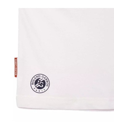 La camiseta presenta un diseño icónico con el cocodrilo de Lacoste en el centro y el logo de Roland Garros en el lateral, destacando su colaboración única. Una banda limpia co-branded añade un toque de elegancia, mientras que el cocodrilo en silicona en la parte inferior delantera refuerza su autenticidad y estilo.