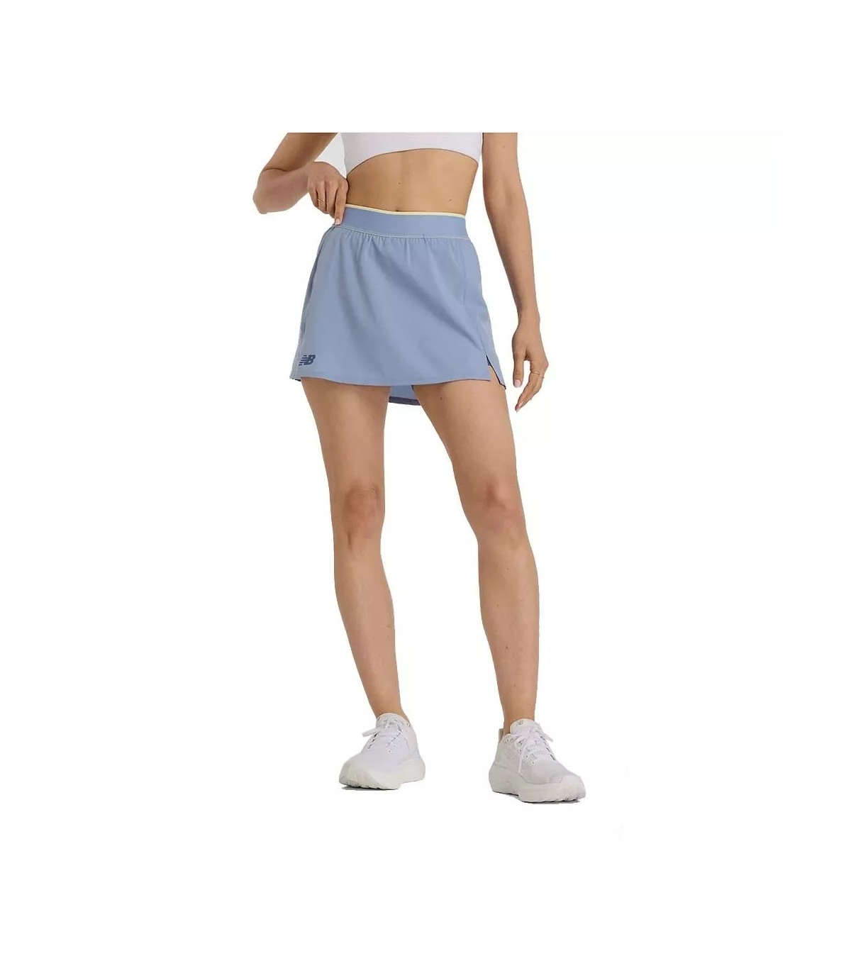 Con la Falda Azul Gris Tournament de New Balance, no solo estarás preparada para afrontar cualquier desafío en la pista, sino que también lo harás con un estilo inigualable. Mejora tu juego y luce espectacular con esta pieza esencial en tu armario de tenis.