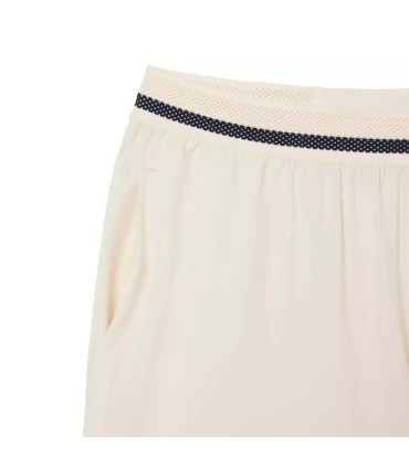 El Short Lacoste Tennis x Novak Djokovic destaca por su corte impecable y un diseño pensado para el rendimiento máximo en el tenis de alto nivel. Presenta un color blanco roto, asociado con el poder y la concentración, lo que lo convierte en un aliado ideal para dominar en la pista. La cintura elástica es un detalle único que incorpora una banda dorada brillante, añadiendo un contraste rico y un toque de lujo discreto, una sutil alusión a los trofeos más prestigiosos del mundo del tenis.
