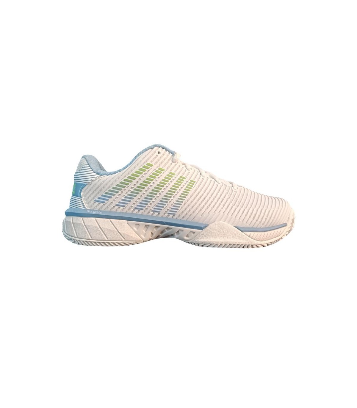 Las Zapatillas Kswiss Hypercourt Express 2 HB Clay Blanco Azul Verde Mujer están diseñadas para ofrecer máxima comodidad y estabilidad en cada partido. Su suela de espiga proporciona un agarre excepcional en pistas de tierra batida, mientras que el diseño ergonómico asegura una sujeción perfecta, adaptándose al movimiento natural del pie. Ideales para jugadoras que buscan rendimiento y estilo en la pista.