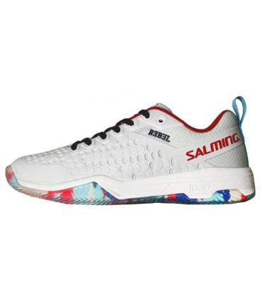 Descubre las Zapatillas Salming Rebel Light Dazzle Blanco Rojo Azul Mujer, diseñadas especialmente para brindar una comodidad excepcional y una sujeción firme en cada paso. Su ligereza y diseño ergonómico garantizan estabilidad en cada movimiento, mientras que su suela ofrece un agarre superior en la pista. Ideales para jugadoras que buscan rendimiento y estilo en sus partidos de pádel.