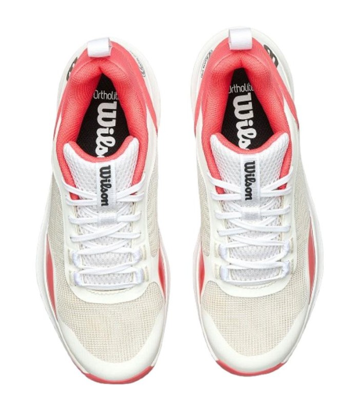 Las Wilson Hurakn Pro V2 ofrecen una sensación de ligereza y libertad de movimiento, sin comprometer la protección y el soporte necesarios para el juego de pádel. Su diseño atractivo en blanco y rosa Dubarry no solo destaca en la pista, sino que también ofrece un ajuste cómodo que se adapta a la forma del pie.