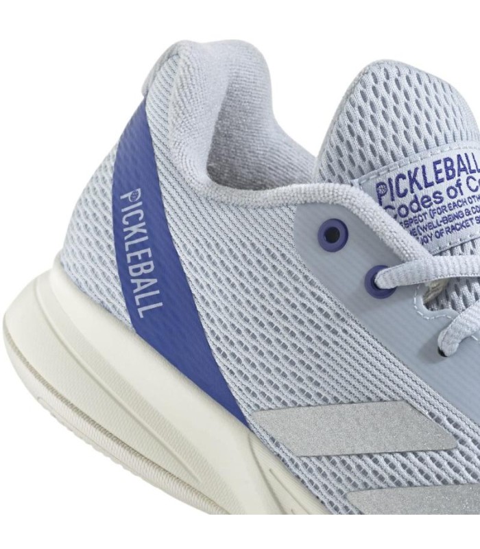 Adidas Pickleball Bourtlash Pantoufles Bleu Silver Femme sont idéales pour les joueurs de pagayer à la recherche d'une chaussure qui allie fonctionnalité et style. Parfait pour ceux qui veulent améliorer leurs performances de piste sans sacrifier le confort.
