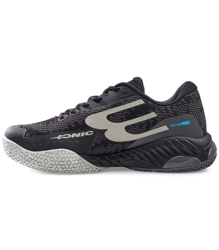 Les baskets de Bullpadel Ionic 26V noires sont conçues pour offrir une stabilité dynamique et un confort supérieur sur la cour à pagaie. Ce modèle intègre le système de stabilisation arrière du BPS, un élément central de sa conception qui assure un support de pied optimal pendant les mouvements latéraux et des actions intenses. Ce système est idéal pour les joueurs exigeants à la recherche d'une chaussure polyvalente qui allie style moderne, une stabilité améliorée et un grand confort pour des allumettes continues.