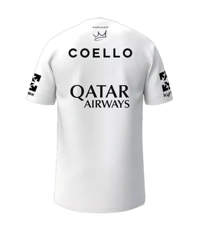 Les Tee-shirt HEAD Arturo Coello 2025 Blanc C'est une pièce essentielle pour les fans de pagayes qui souhaitent exprimer leur admiration pour le joueur espagnol renommé Arturo Coello et mettre en évidence sur la piste. Ce t-shirt est une réplique exacte du maillot officiel qui a l'air Coello lors de ses compétitions, y compris les logos de ses sponsors, ce qui en fait un objet très convoité de ses partisans.