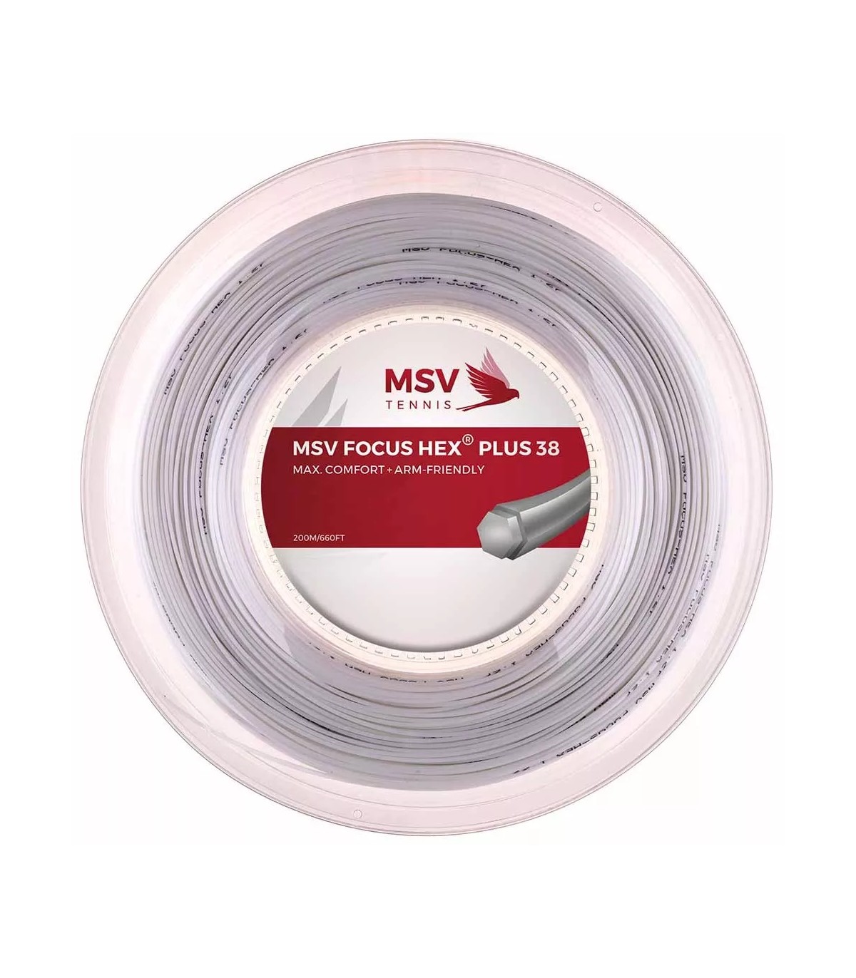 Fabriqué en polyester blanc, le MSV Focus Hex Plus 38 offre non seulement une esthétique propre et moderne, mais garantit également une durabilité remarquable. Sa structure douce et flexible permet une plus grande réserve de puissance, assurant que chaque frappe ait la force nécessaire sans sacrifier le confort. Dès le premier impact, la flexibilité du cordage est évidente, procurant une sensation de confort et d'amortissement qui minimise les vibrations indésirables, même lors de frappes décentrées.