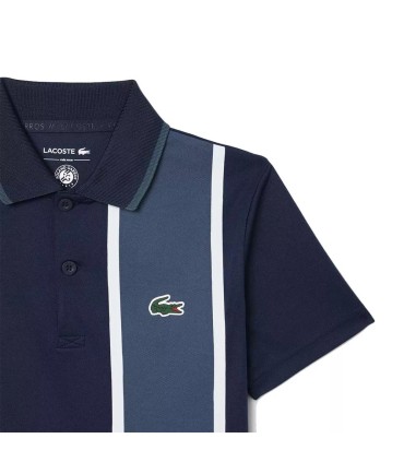 Le design du polo se distingue par sa couleur bleu marine élégante, complétée par un col Lacoste distinctif, ajoutant une touche de sophistication et de style aux vêtements de sport des jeunes athlètes. De plus, il est orné de l'emblématique crocodile vert en silicone sur la poitrine, symbole de la qualité et du prestige de Lacoste, aux côtés du logo Roland Garros, soulignant son association avec l'un des tournois de tennis les plus prestigieux au monde.