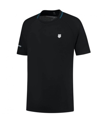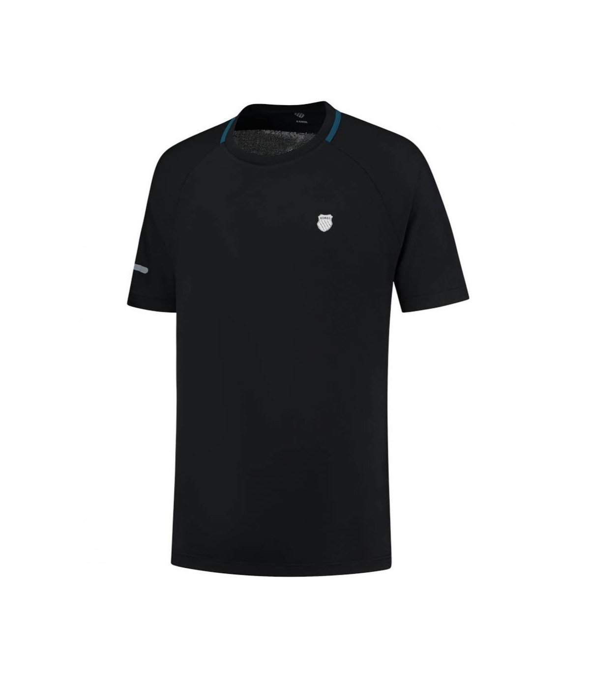 Le Col est Agricené d'une Touche avec un Ligné Bleue et Le Logo bouclier k-suisse Est présente sur la poitrine. Disponible en Coloris Noir.