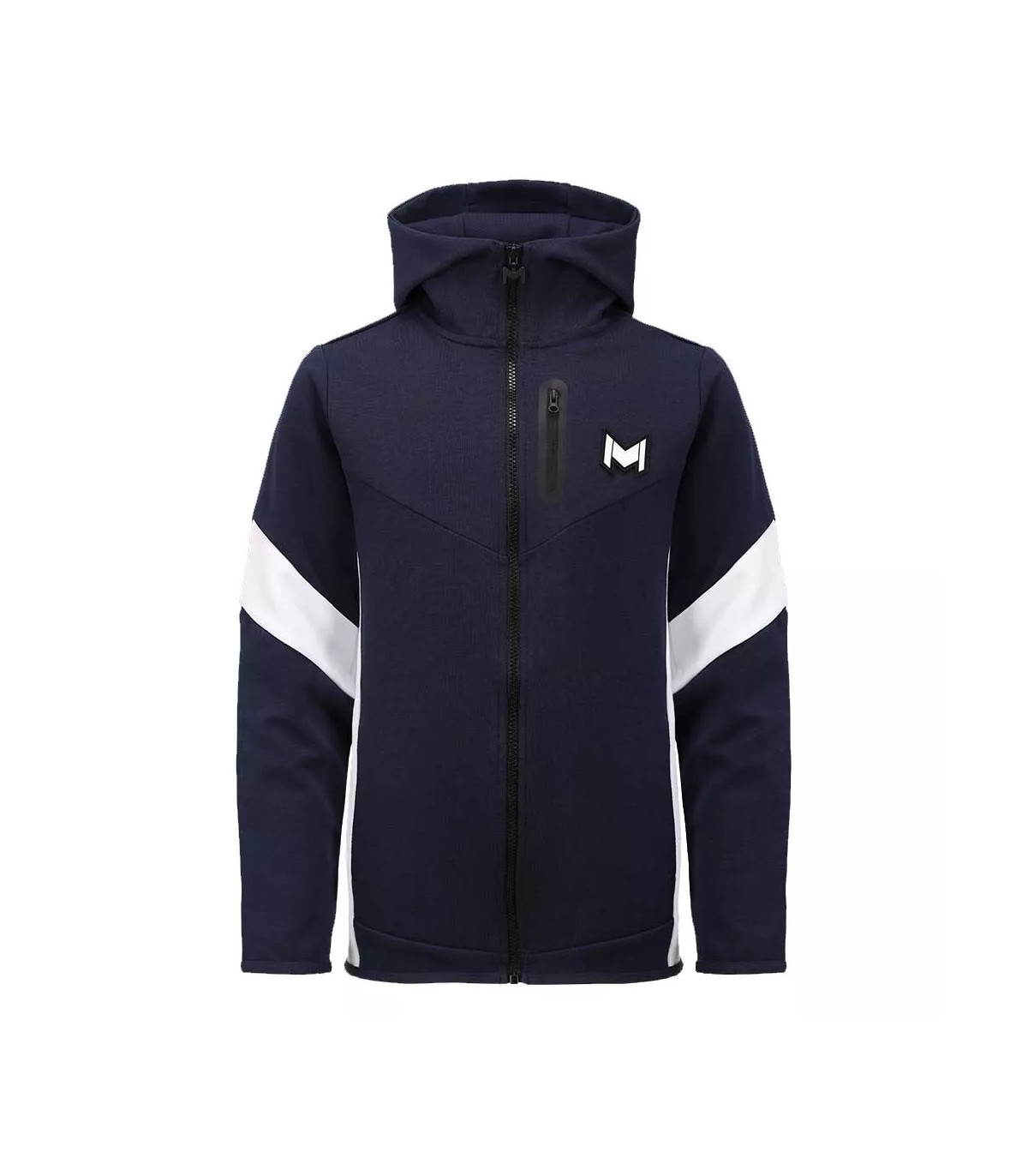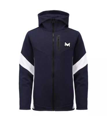Confectionnée dans une élégante couleur bleu marine, la veste se distingue par son design moderne et sophistiqué. Le logo blanc iconique en forme de "M", soigneusement brodé sur la poitrine, garantit non seulement l'authenticité du produit, mais ajoute également une touche de distinction à toute tenue sportive. Ce vêtement est idéal pour ceux qui cherchent à se démarquer tant par leur performance que par leur bon goût.