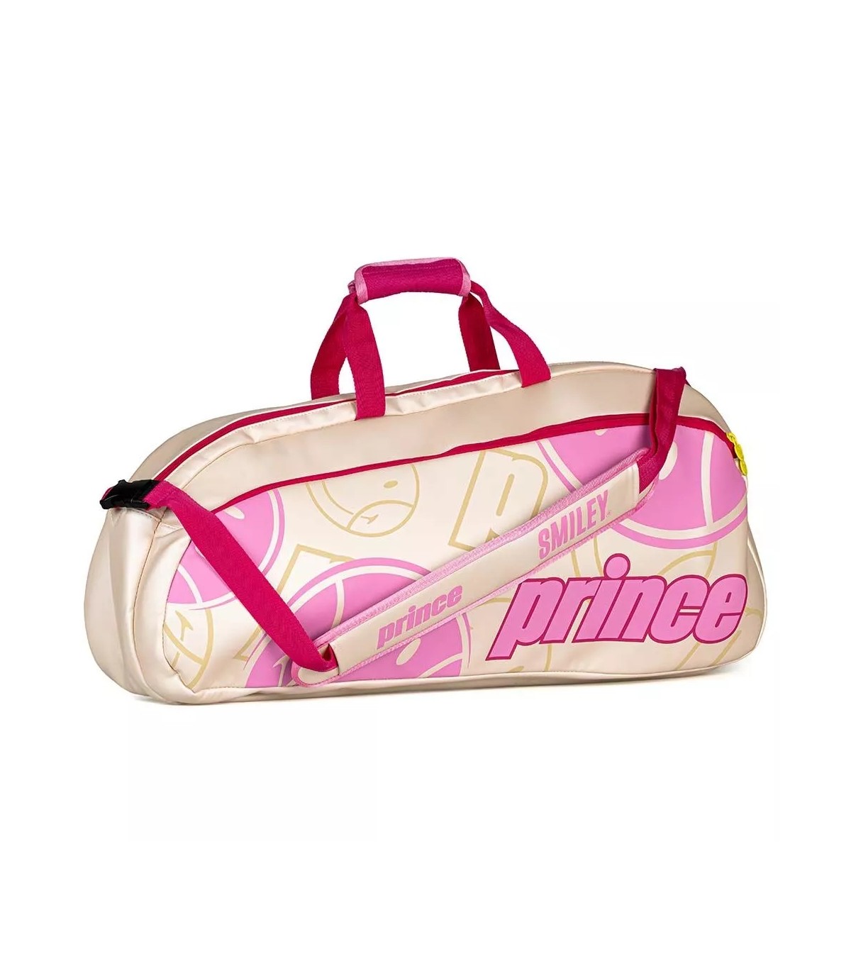 Le design exclusif Smiley apporte une touche d'originalité et de fun au sac, vous permettant de vous démarquer tant sur le court qu'en dehors. La combinaison de ses couleurs beige et rose n'est pas seulement attrayante, mais elle reflète également une esthétique moderne et joyeuse, parfaite pour ceux qui souhaitent exprimer leur personnalité tout en prenant soin de leur équipement.