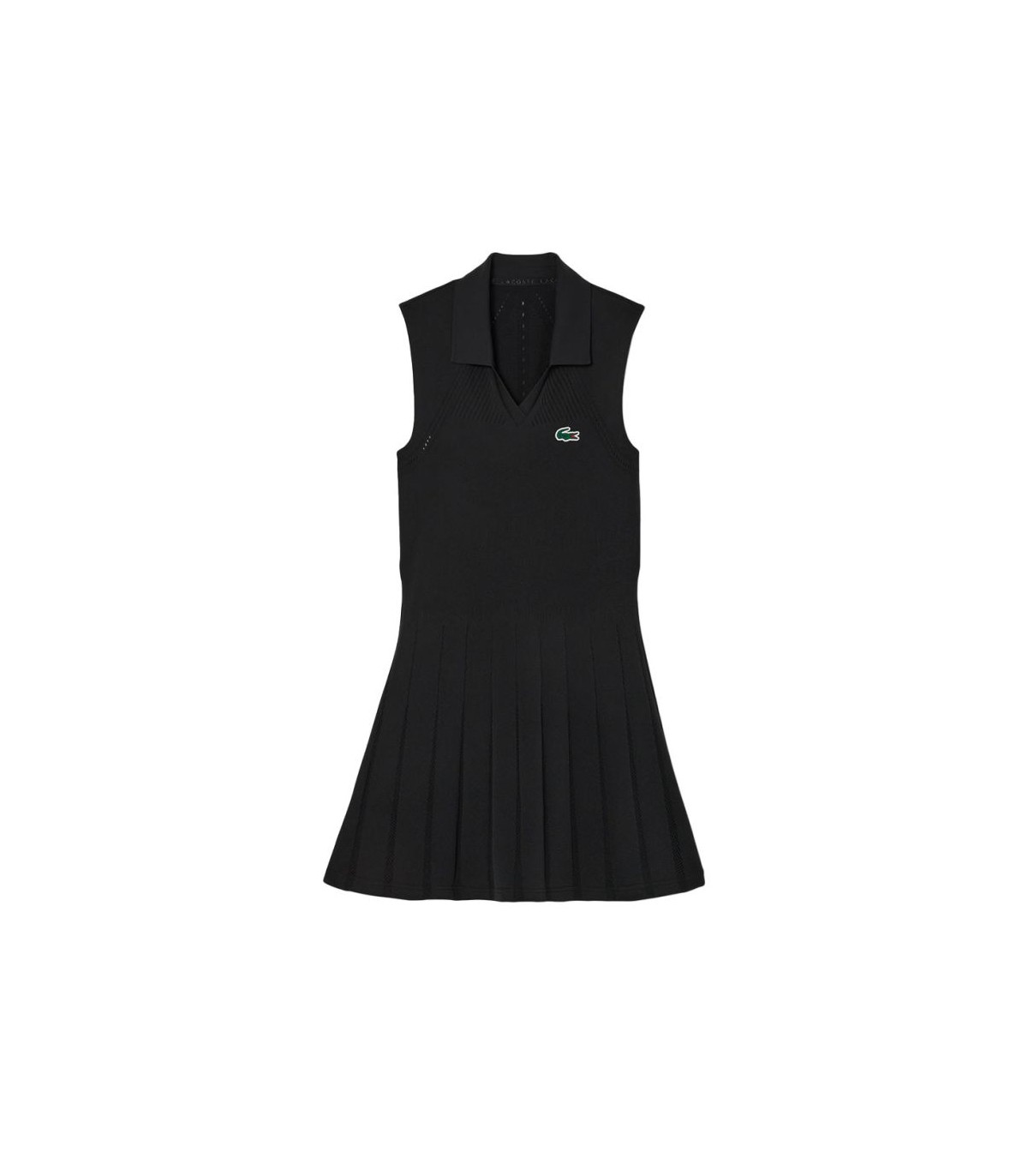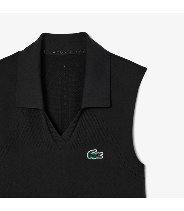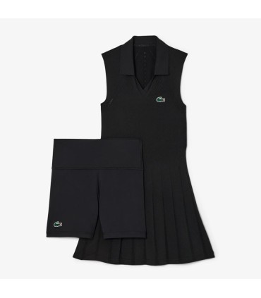 Robe Lacoste Une femme noire de tennis élastique allie élégance et performance pour les joueurs de tennis les plus exigeants. Fabriqué à partir de maille technique sans soudure, il offre une mobilité sans restriction et une ventilation optimale. Comprend un short de taille séparé pour un plus grand soutien et le crocodile emblématique de Lacoste dans silicone ajoute une touche de distinction. Idéal pour mettre en évidence sur la piste.