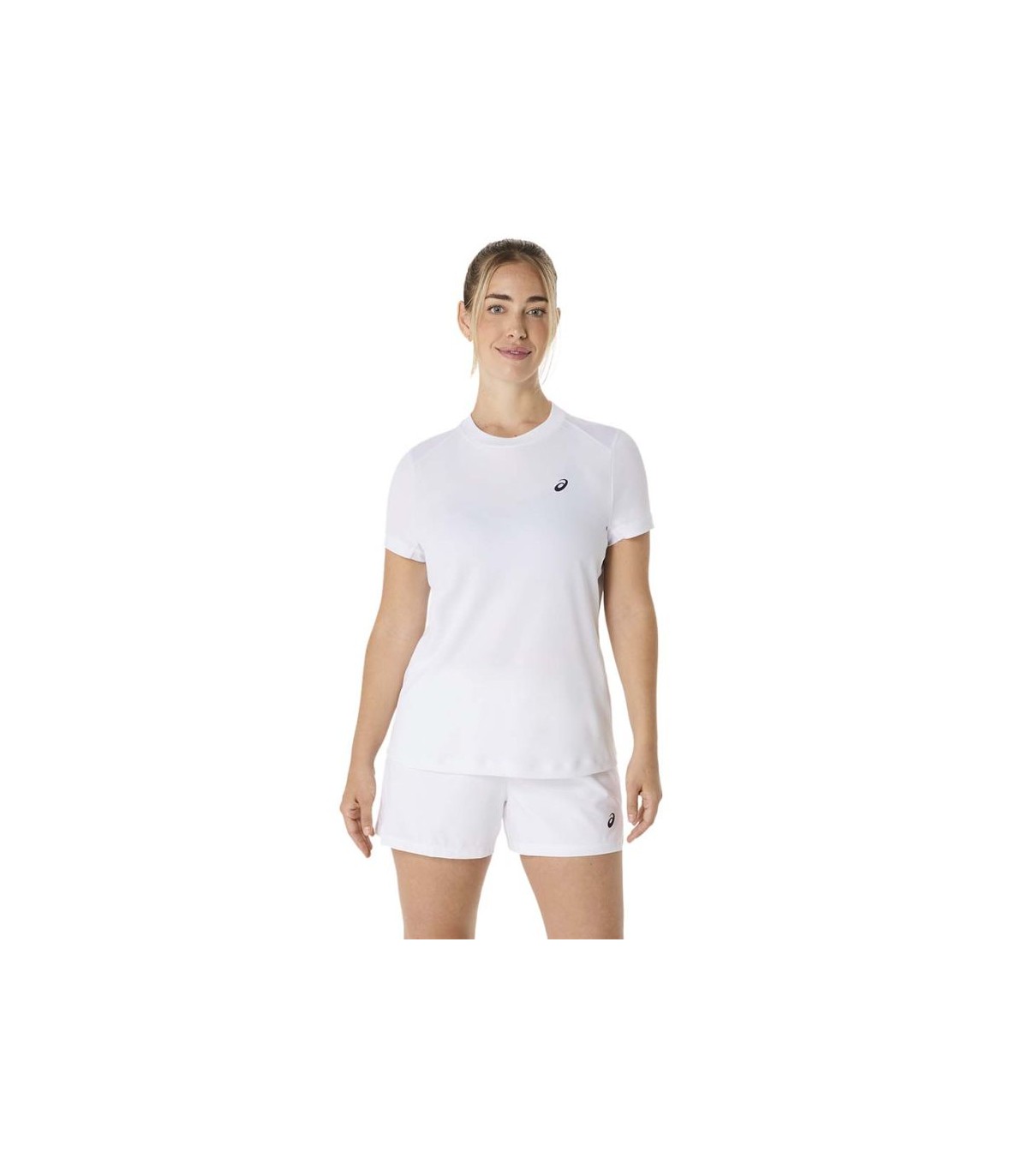 Le t-shirt White Femme Asics Court est parfait pour les étudiants de tennis à la recherche de style et de performance. Fabriqué pour offrir un confort et une liberté de circulation, il est limité à sa capacité d'évacuation de l'humidité et de son engagement en faveur de la durabilité, composée de 50% par des matériaux recyclés. Idéal pour toute occasion sur la piste.