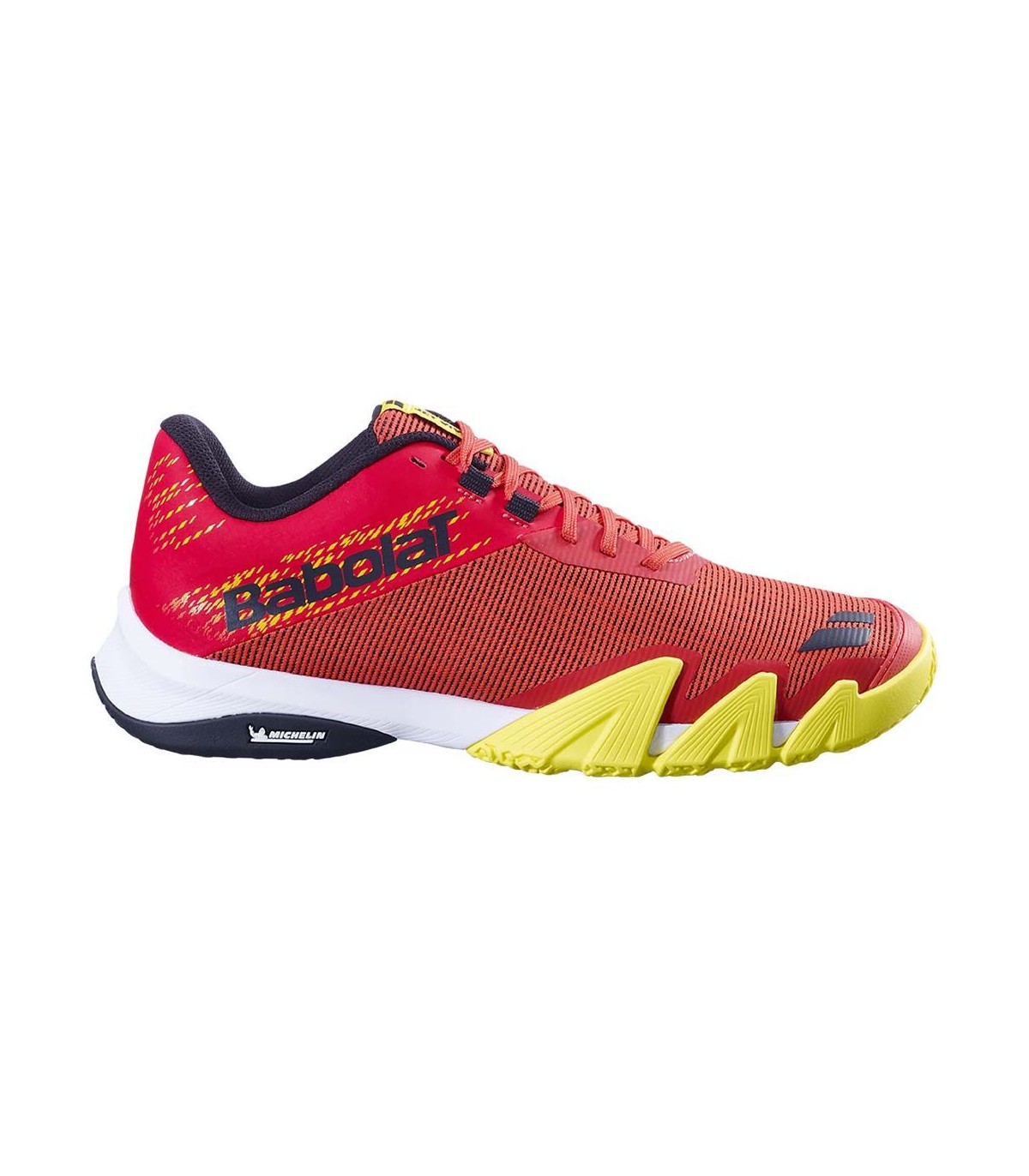 Les chaussures Babolat Jet Viva Rouge sont un choix exceptionnel pour tout joueur de padel, qu'il soit débutant, intermédiaire ou expert. Conçues pour offrir des performances maximales, ces chaussures se distinguent par leur légèreté, réactivité et confort, permettant des mouvements agiles et assurant un excellent amorti à chaque pas.