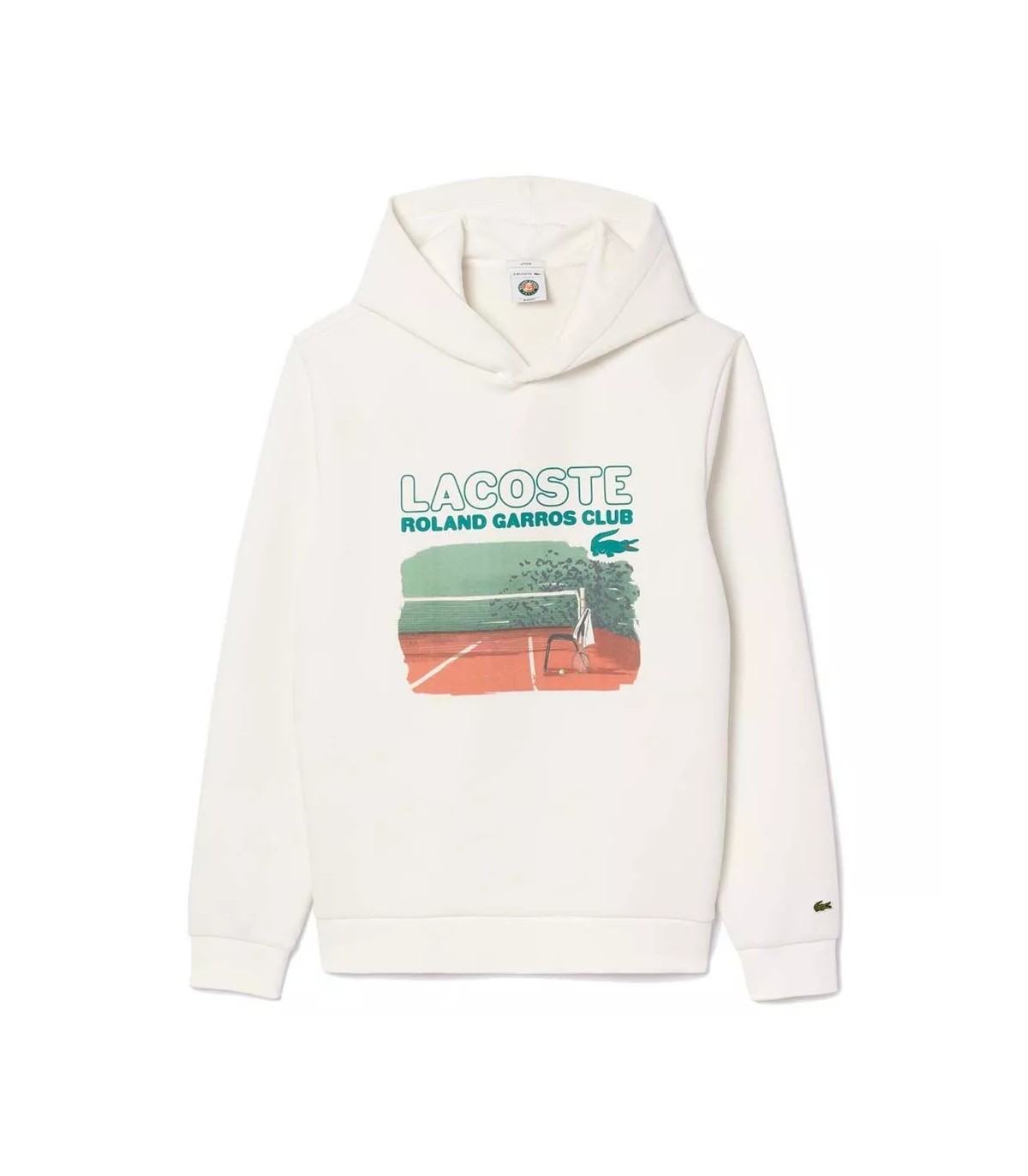 Sul petto, una stampa che ricorda il leggendario evento di Roland Garros aggiunge un tocco speciale a questa felpa, evocando la ricca storia e la tradizione che circondano uno dei tornei di tennis più prestigiosi al mondo. Questa connessione con il mondo del tennis e dello sport in generale rende il capo un omaggio all'eccellenza sportiva.