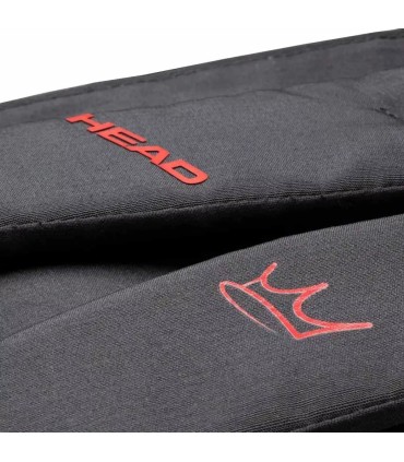 Il design di questa borsa si distingue per la sua estetica premium. Il logo di HEAD in un elegante colore argento spicca su uno sfondo nero, mentre la fodera interna in rosso, caratteristica di Coello, rafforza la forte identità visiva di questo modello. Una discreta corona su una delle cinghie ricorda lo spirito da campione di Arturo Coello.