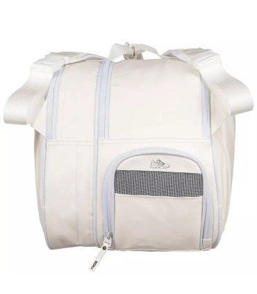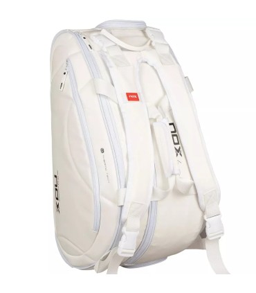 La Nox Pro Series Bianca offre uno stoccaggio ottimizzato per garantire il trasporto sicuro di tutta la tua attrezzatura. Il suo compartimento principale, dotato di una doppia cerniera, ha la capacità di ospitare fino a tre racchette, abbigliamento e accessori. Inoltre, il compartimento termico NOX ThermoTech è progettato per proteggere fino a due racchette dalle variazioni di temperatura o per conservare bevande, assicurando che i tuoi effetti personali siano sempre nelle migliori condizioni.