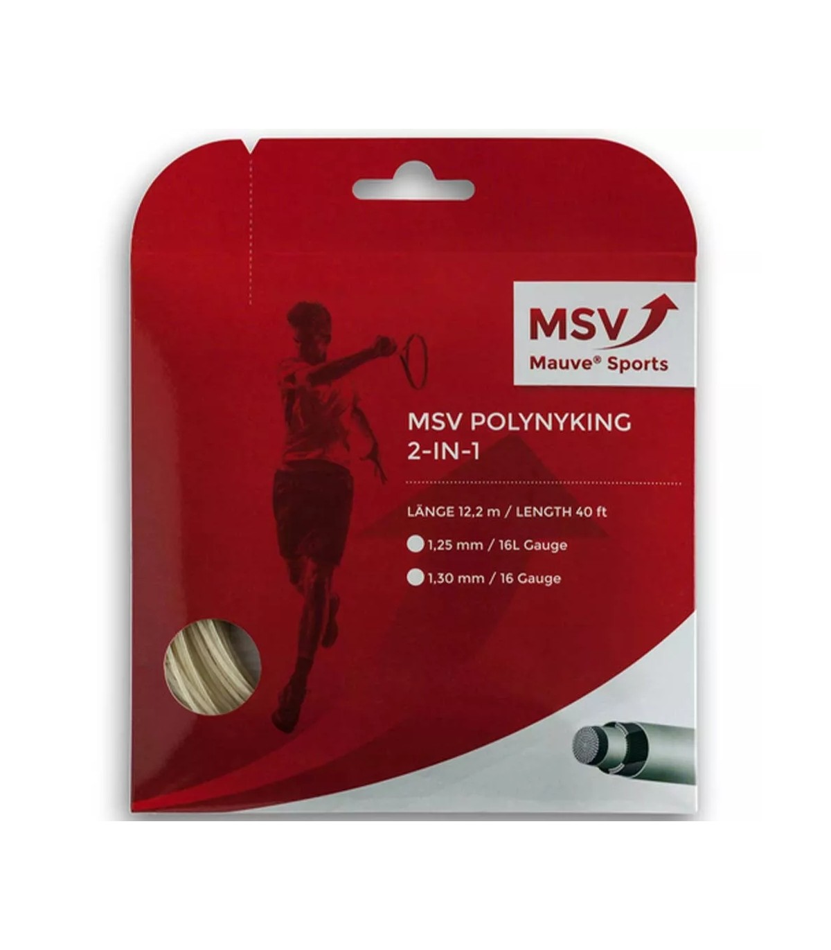 Scopri il MSV 12m Polynyking, un cordone multifilamento di alta qualità progettato per offrire il massimo comfort e gameplay. Questo cordone è costituito da un nucleo centrale con migliaia di filamenti di poliestere fine, fornendo una combinazione unica che garantisce potenza e perdono senza compromettere il controllo della palla.