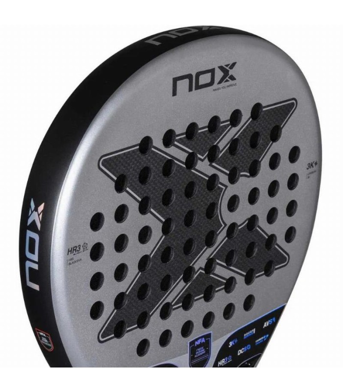 Con un design a goccia, la Nox NextGen Pro Hybrid 3K offre un equilibrio perfetto, permettendo una transizione fluida tra difesa e attacco. La sua eccellente uscita di palla e il controllo sono possibili grazie al suo nucleo HR3 Black EVA, che ottimizza la risposta a ogni impatto. La combinazione di materiali di qualità superiore si traduce in un controllo impeccabile, fornendo un'esperienza di gioco senza pari.