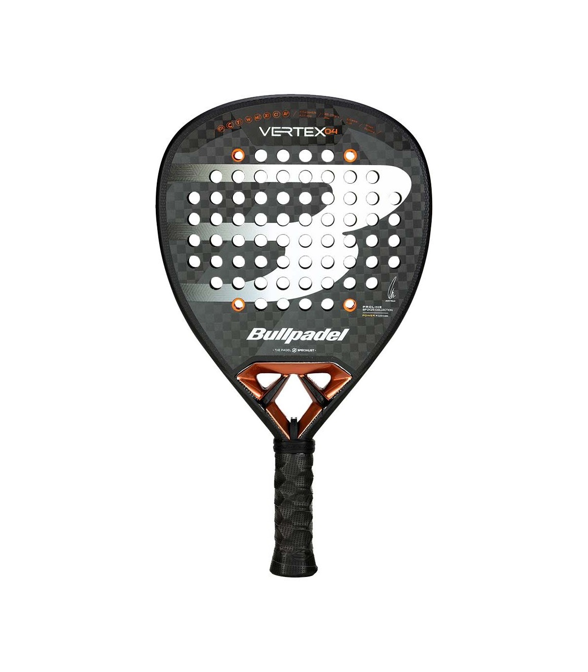 Il BullPadel Vertex 04 2025 combina materiali high-tech per offrire prestazioni superiori. La sua superficie esterna è fatta di XTend Carbon 12K, un carbonio che garantisce leggerezza e durata. Dentro, il nucleo multi-schiuma offre un eccellente equilibrio tra potenza e controllo. La cornice Carcontube completa la struttura, garantendo una pala leggera ma resistente.