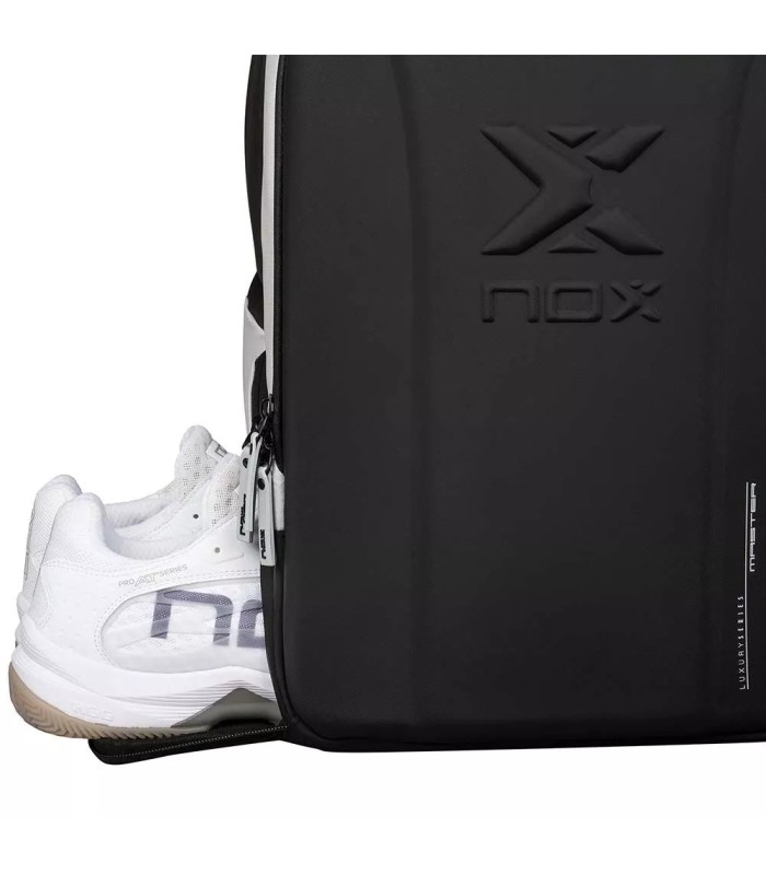 Scopri lo zaino Nox Luxury Master Series nella sua elegante combinazione di colori bianco e nero, progettato per soddisfare le esigenze dei giocatori di tennis e padel più esigenti. Questo prodotto si distingue non solo per la sua estetica moderna, ma anche per la sua funzionalità e durata, diventando un accessorio indispensabile per coloro che cercano comfort e stile nei loro spostamenti sul campo di gioco.