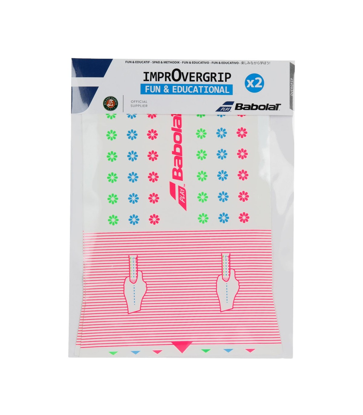 Scopri il Pack di 2 Overgrip Babolat Improvergrip in bianco e rosa, progettato appositamente per facilitare l'apprendimento delle impugnature da tennis sulle racchette dei più giovani. Questi overgrip non solo offrono un'eccellente aderenza e comfort, ma trasformano anche l'esperienza di gioco in qualcosa di divertente ed educativo. Perfettamente adatti per racchette junior da 23 a 25 pollici, questi overgrip sono la scelta ideale per coloro che stanno iniziando a familiarizzarsi con il mondo del tennis.