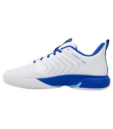 Scopri le scarpe K-Swiss UltraShot Light nella sua elegante combinazione di bianco e blu, progettato per offrirti un'esperienza di gioco ineguagliabile. Questo modello di K-Swiss è ideale per i giocatori che cercano una luce leggera senza compromettere la stabilità o il comfort. Perfetto per qualsiasi tipo di superficie, queste pantofole sono il alleato perfetto per migliorare le prestazioni sulla pista.