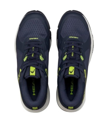 Con un design accattivante in Blu navy e Lima, queste pantofole non si distinguono solo per la loro estetica, ma anche per la loro funzionalità in pista. La tecnologia di HEAD Incorporato nella sua fabbricazione garantisce una cassaforte in forma e un'esperienza di gioco dinamica e confortevole.