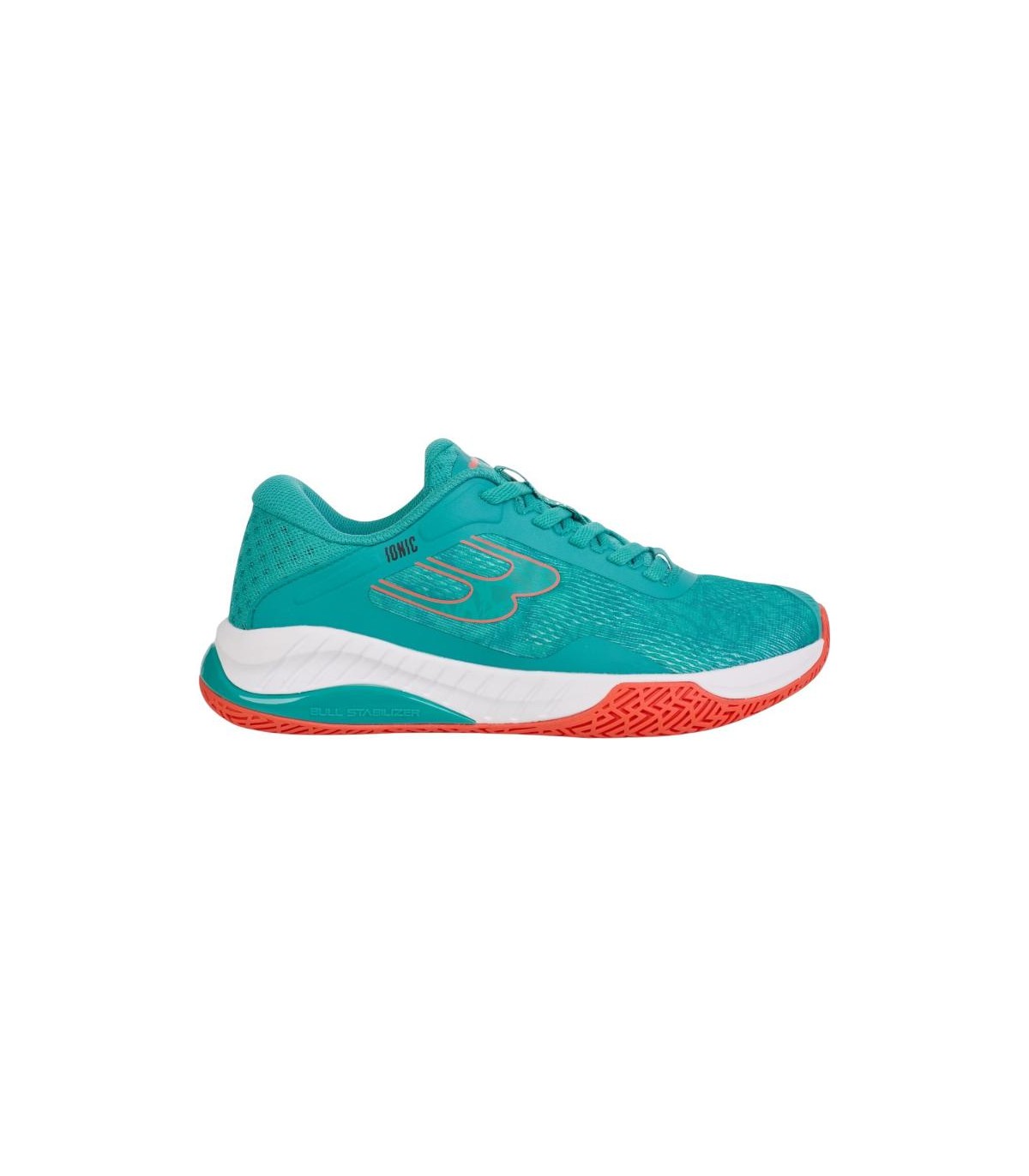 Le scarpe del turchese BullPadel Ionic 25i per le donne sono perfette per i giocatori a pale in cerca di calzature che combinano stile e funzionalità. Ideale per entrambi i principianti che vogliono migliorare il loro gioco e per esperti che hanno bisogno di prestazioni ottimali sulla pista.