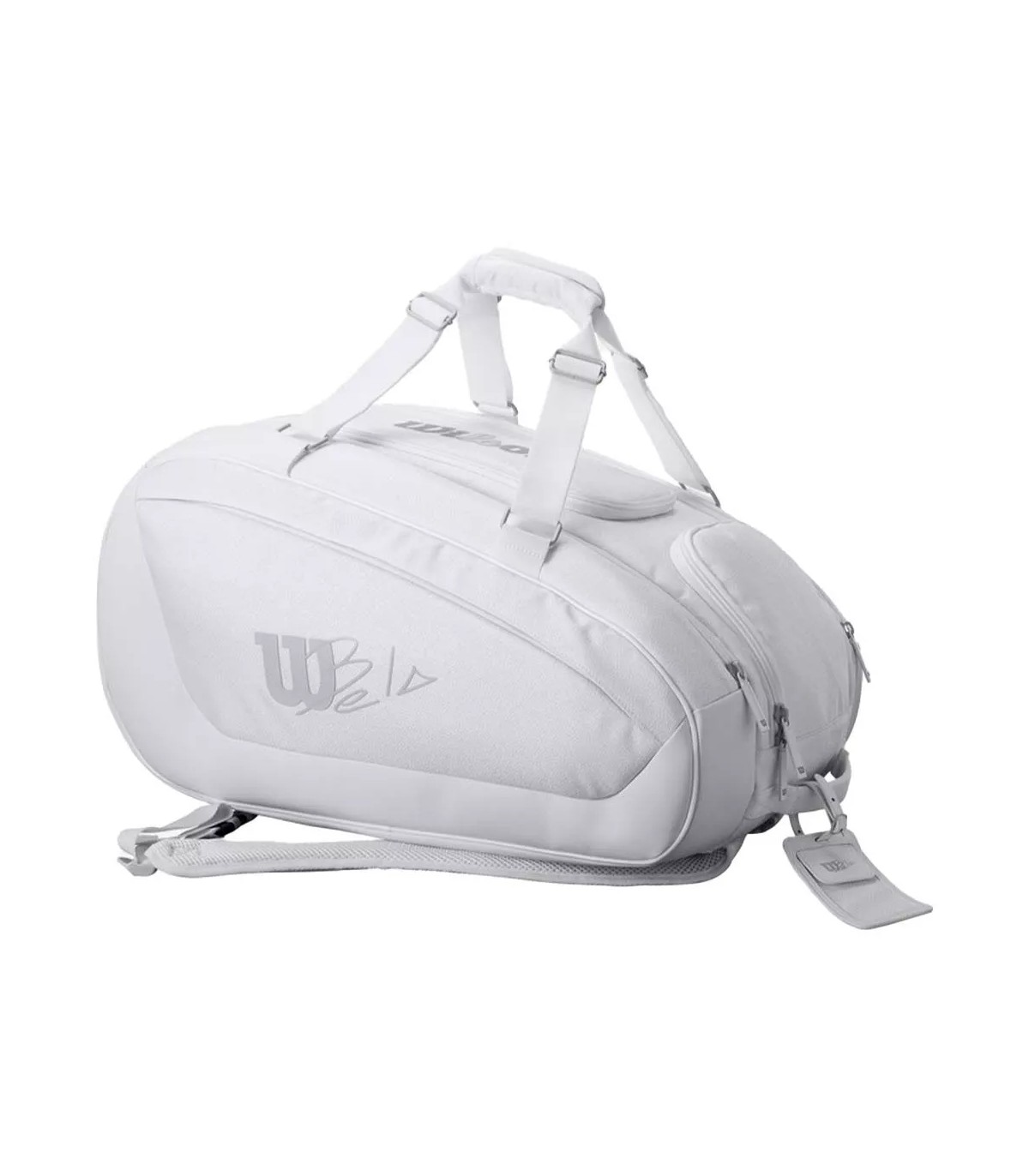 A Bolsa de Raquete de Padel Wilson BELA Super Tour Branca é um acessório imprescindível para os entusiastas do padel que procuram combinar funcionalidade e estilo. Este modelo faz parte de uma prestigiada coleção que homenageia o lendário jogador de padel Fernando Belasteguín, garantindo uma qualidade excepcional e um design sofisticado.