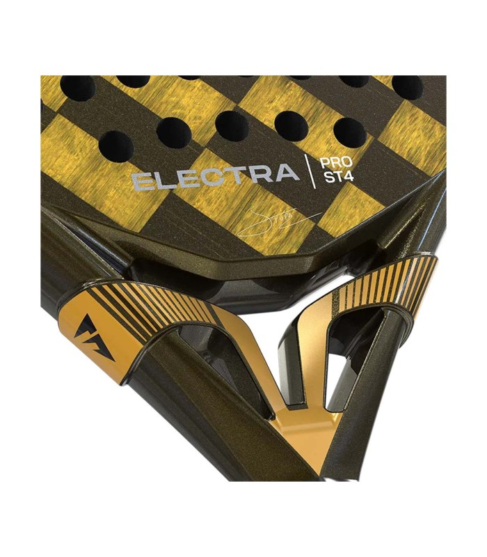 Fabricado por Sioux, uma marca reconhecida no mundo do tênis, o St4 Stupa Electra Pro é projetado para jogadores ofensivos que querem maximizar seu jogo. Tem um peso de 355-370g e um equilíbrio Levemente na cabeça, que fornece uma combinação perfeita de manobrabilidade e poder em cada golpe.