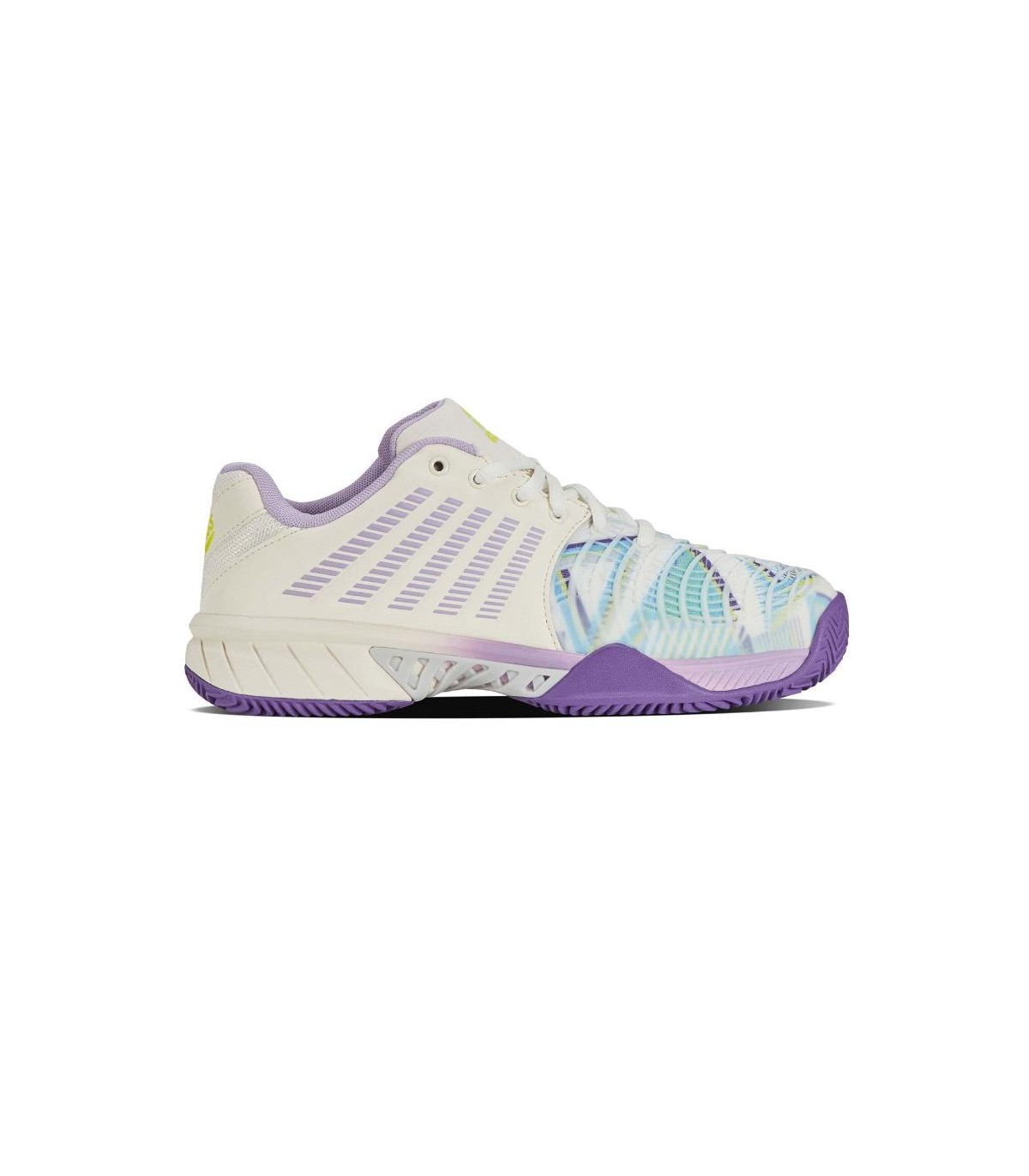 A K-Swiss Express Light 3 HB Sneakers Em branco e roxo para as mulheres são a escolha perfeita para aqueles poços apaixonados que procuram sapatos que combinam Conforto, desempenho e estilo Na pista. Projetado especificamente para oferecer suporte e estabilidade, esses chinelos garantem que cada movimento seja seguro e ágil, permitindo que você se concentre apenas no seu jogo.