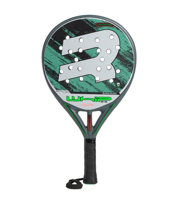 Com um formato de lágrima, a Royal Padel Whip proporciona um equilíbrio alto que favorece golpes mais potentes nos ataques, ideal para jogadores que desejam impor seu estilo de jogo. Seu quadro de fibra de vidro bidirecional oferece uma flexibilidade excepcional, melhorando a durabilidade e proporcionando uma pegada confortável e precisa.