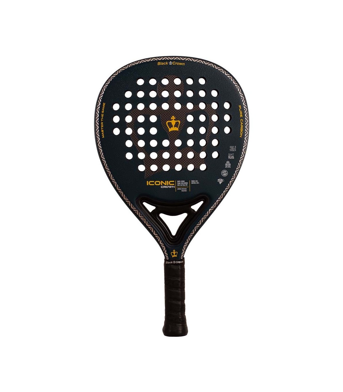 A Coroa icônica Distingue-se por sua forma híbrida, que fornece um "ponto doce" ou um ponto doce extremamente generoso. Isso significa que até mesmo os golpes off-center podem ser seguros e eficazes, concedendo a você confiança em cada jogo. A superfície dos rostos é coberta com Carvão 3k, um material que fornece a rigidez necessária para acelerar a bola com precisão.