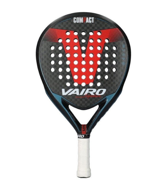 Descubra a pala Vairo Compact Signature, uma obra-prima do padel projetada para jogadores de nível avançado ou profissional que buscam o equilíbrio perfeito entre controle e potência. Com um design sofisticado em preto brilhante com detalhes em branco e vermelho, esta pala não se destaca apenas pela sua estética imponente, mas também pelo seu desempenho excepcional na quadra.