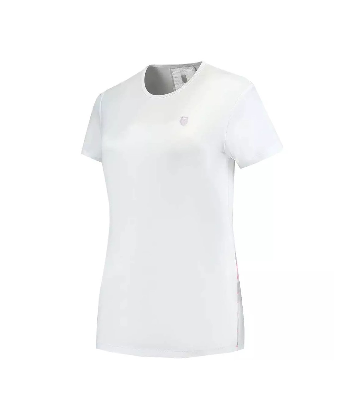 O K-Swiss Hypercourt Advantage 4 T-shirt das mulheres é ideal para os jogadores à procura de estilo e desempenho. Seu design ergonômico e tecido respirável garantem conforto e liberdade de movimento na pista. Com costuras suaves e material leve, é perfeito para treinos intensos, combinando elegância e funcionalidade em um clássico branco.