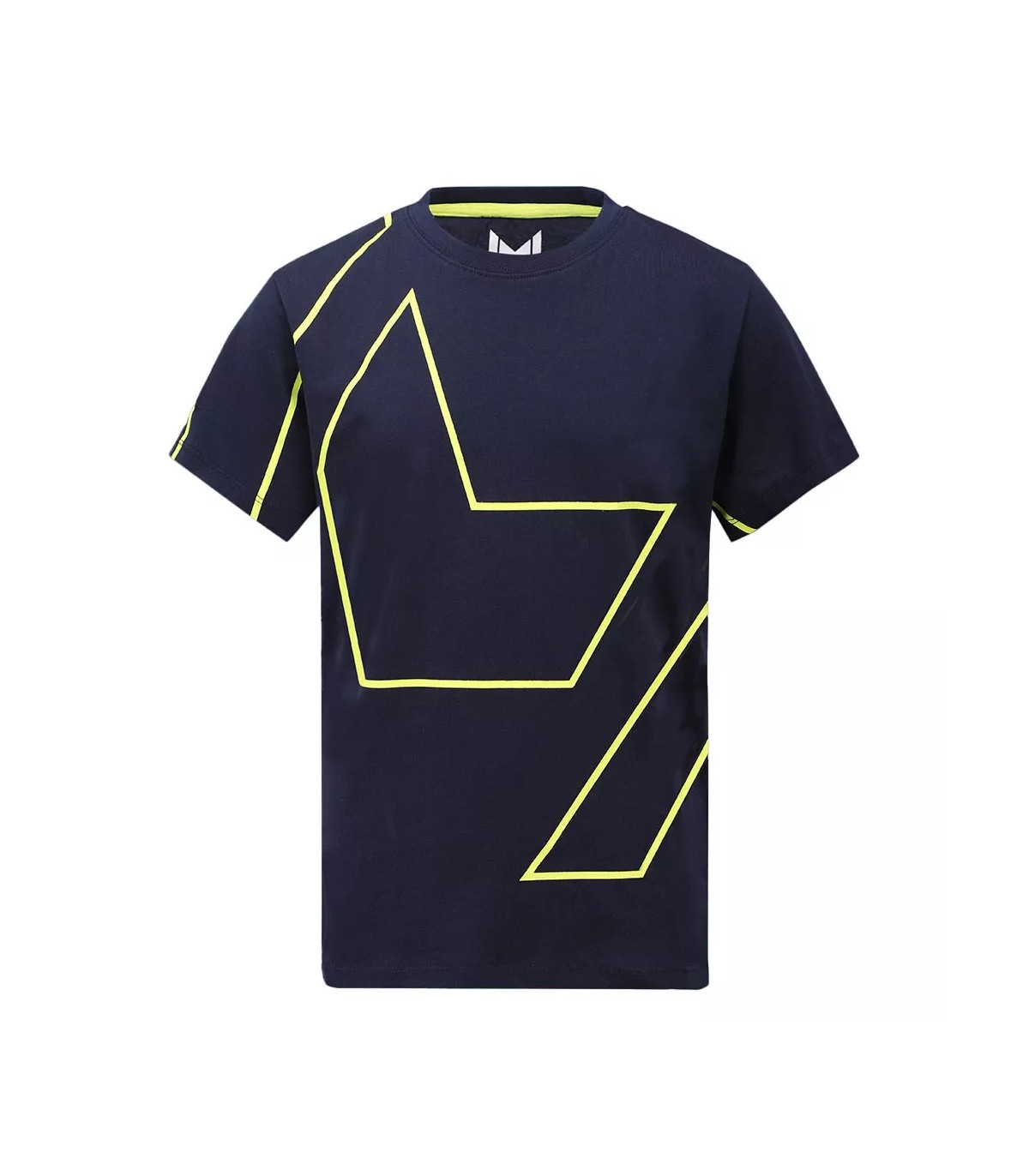 O treinamento azul da marinha do t-shirt do muatóglou é perfeito para jovens jogadores de tênis que procuram conforto e estilo. Feito em algodão 100% orgânico, oferece suavidade e respirabilidade. Seu design moderno com o logotipo e detalhes de Mouratoglou em amarelo torna uma roupa ideal para treinos intensos e dia a dia.