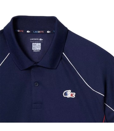 O pólo Lacoste A equipe da França do Tênis da Marinha é a escolha perfeita para os jogadores que procuram desempenho e estilo. Feito de piqué indemountável de poliéster reciclado, oferece durabilidade e conforto graças à sua tecnologia ultra-seca. Seu design inclui painéis de ventilação e o icônico crocodilo tricolor, ideal para destacar no tribunal.