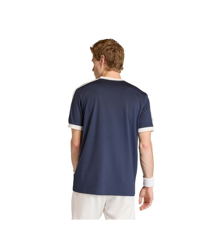A T-shirt de tênis da Marinha Azul da Marinha de Adidas É mais do que uma simples peça de vestuário esportivo; É uma declaração de estilo que honra o legado do tênis, incorporando as inovações necessárias para um jogo moderno e eficiente. Não importa se você está competindo em um torneio ou apenas desfrutando de uma combinação amistosa, esta camiseta terá certeza de que você olha e se sente como um verdadeiro profissional.