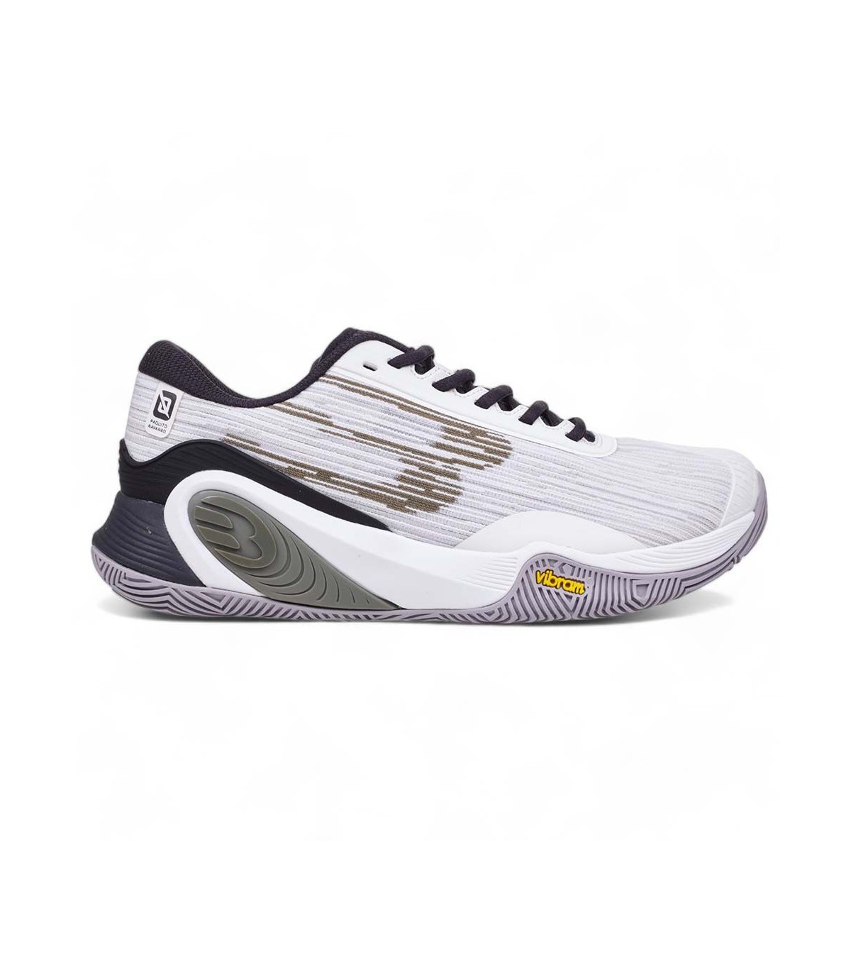 As zapatillas Bullpadel Hack Vibram 25V são projetadas para os jogadores de padel mais exigentes que buscam combinar desempenho, conforto e estilo em cada partida. Estes ténis, que contam com o apoio do reconhecido jogador Paquito Navarro, destacam-se pelo seu design moderno e elegante em tons brancos e pretos, tornando-os uma opção ideal para aqueles que desejam destacar tanto pelo seu jogo quanto pela sua aparência.