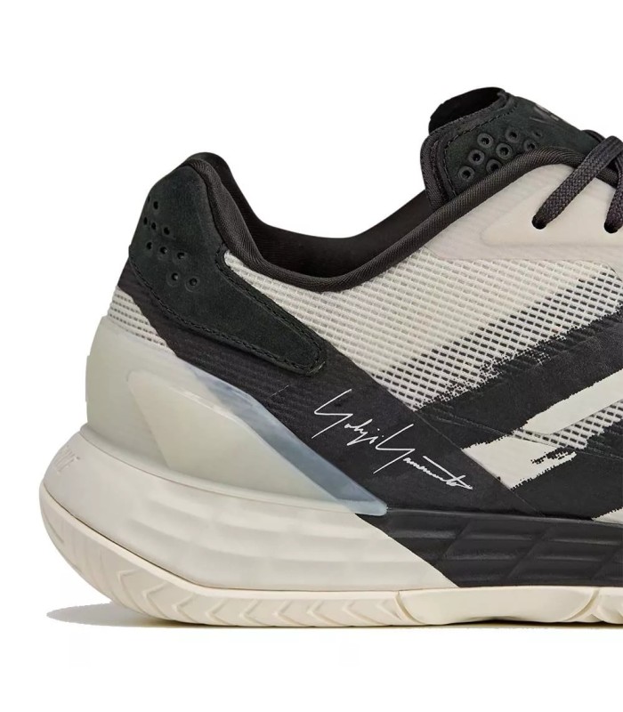 Na pista, a agilidade é multiplicada, permitindo que você alcance bolas que pareciam inatingíveis. Esses chinelos são ideais para os jogadores que baseiam seu jogo à velocidade e constantemente olham para superar seus oponentes. A versão exclusiva e 3 fornece um design inovador com bandas pretas gráficas da Adidas, a assinatura de Yohji Yamamoto e a inscrição e-3 na língua.
