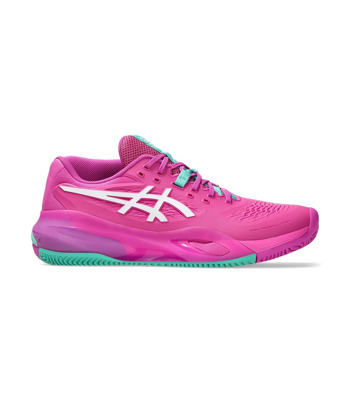 Descubra as lances X Sapatos de resolução de gel de Asics em um rosa e verde vibrante, projetados para oferecer desempenho máximo no campo de tênis. Este modelo icônico se adapta perfeitamente aos jogadores que buscam estabilidade e conforto em cada movimento.