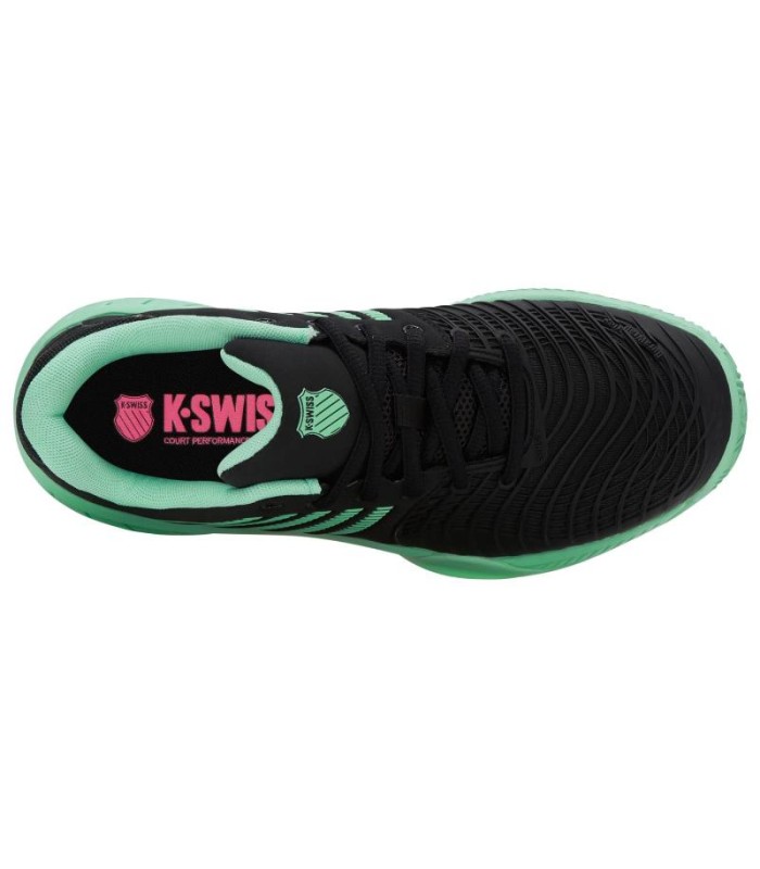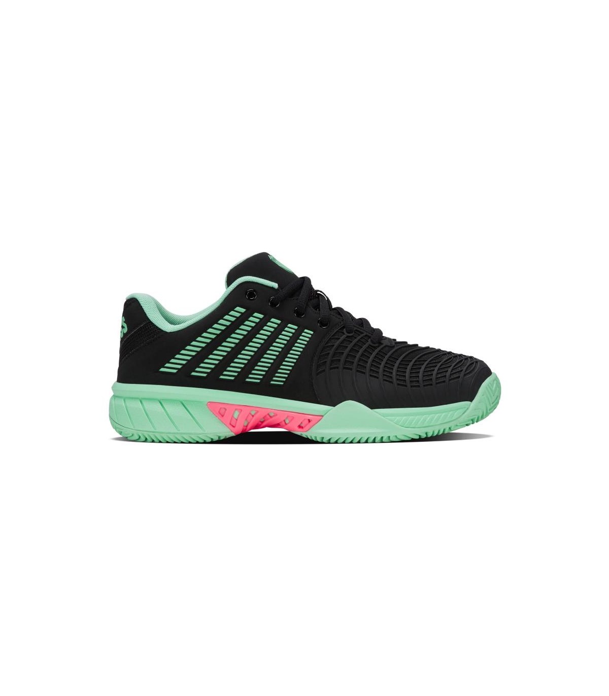 Descubra o equilíbrio perfeito entre estilo, desempenho e conforto com o Kswiss Express Light 3 HB de calçados de argila em preto, hortelã e cores rosa. Projetado especificamente para jogadores de remo, esses chinelos oferecem o suporte necessário para dominar a pista com confiança.